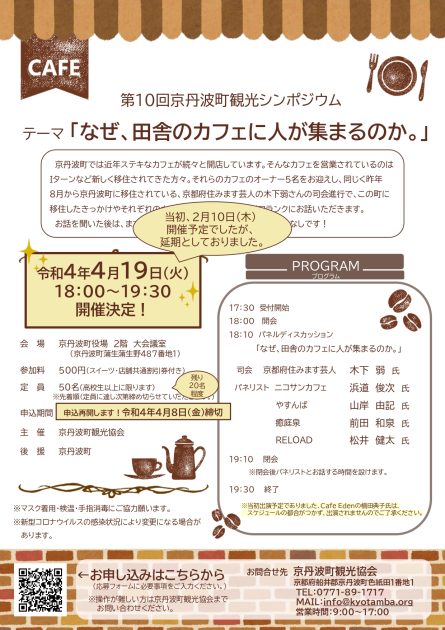 京丹波町では、近年ステキなカフェが続々と開店しています。そんなカフェを営業されているのは新しく移住されてきた方々。それらのカフェのオーナー4名をお迎えし、同じく京丹波町に移住されている京都府すみます芸人の木下弱さんの司会進行で、楽しくフランクにお話いただきます。みなさんぜひこの機会にお越しください。