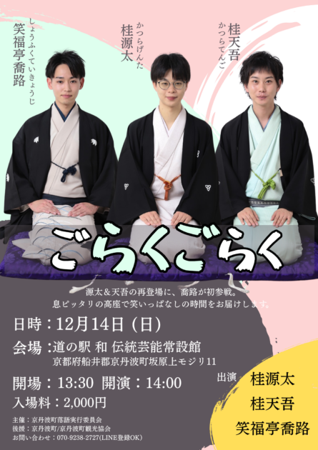 「ごらくごらく」開催!若手落語家3人が京丹波に集結します!