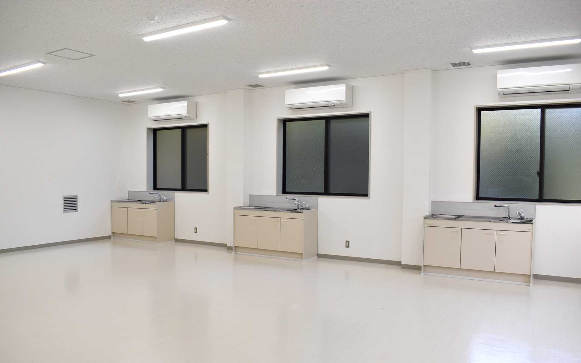 京丹波ロケスタジオでは、屋内撮影に必要な設備が整っています。セット資材や撮影機材の保管が可能なスペースや、出演者やスタッフがリフレッシュできる控室、シャワールーム、トイレも完備。特に、4トン車による大型搬入口があるため、大型機材の搬入もスムーズに行えます。