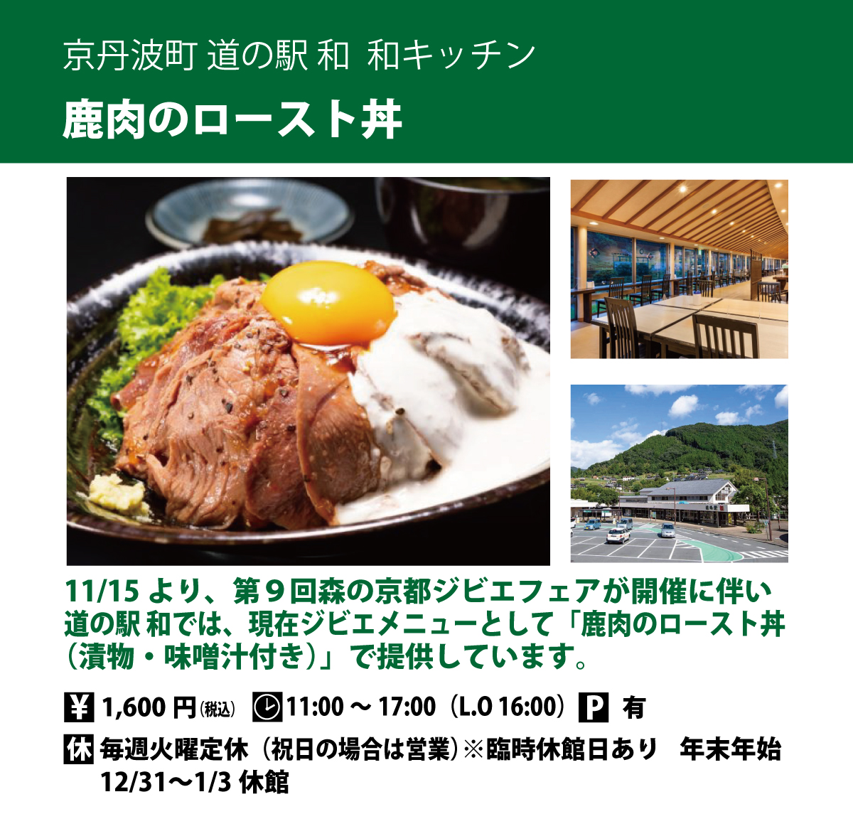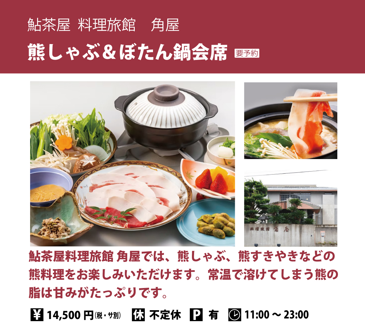 豊かな自然が生んだ深い風味は、まさに森からの最高の贈り物です。本物のジビエをぜひご賞味ください。この季節の贅沢、脂が乗り、旨みが凝縮された旬のジビエが、あなたを待っています。