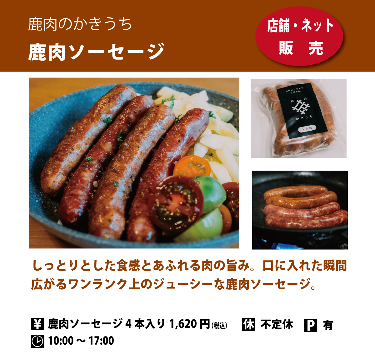 ホームページ(外部リンクになります)https://www.shikaniku-kakiuchi.com/