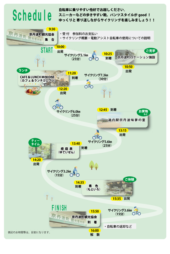 行程  1、受付 スタート時間の10分前までにご集合ください。参加料金のお支払い(